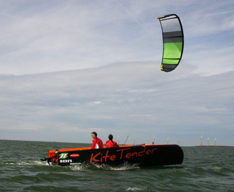 Voor KiteTender te zwolle ontworp Peter Schermer de vormgeving van de 6,5 meter lange kitetender. Een lichte planerende open boot van hout epoxy met een 17 m2 vlieger. De vlieger wordt getrimmed doormiddel van een 2 meter lange rail in de lengterichting waardoor bij harde wind de opwaardse trekkracht meer naar achter geleid kan worden. De besturing van de kite blijft zoals bij kitesurfers, het zelfde, met een bar.