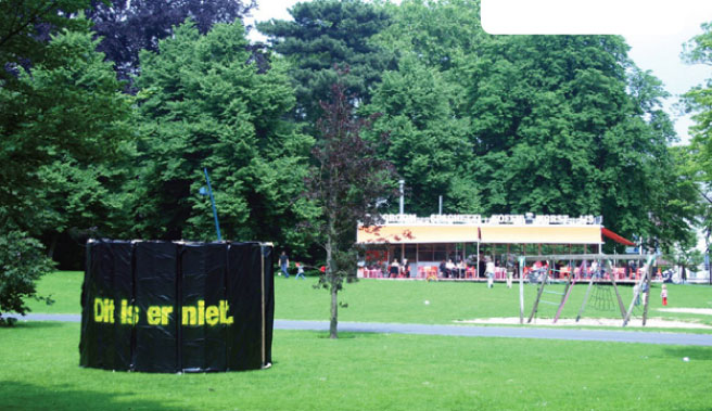 Installatie waarbij in een ‘public space’ twee keer een ‘personal space’ gecreëerd wordt die in contact met elkaar komen door je handen door gaten te steken.