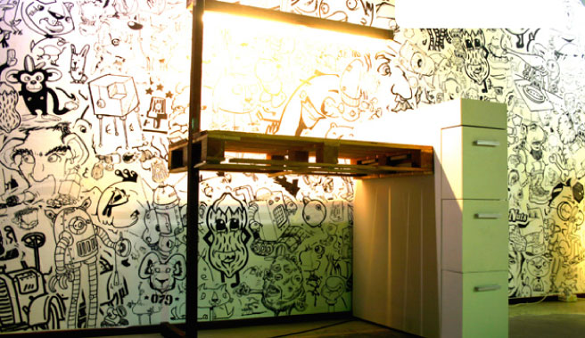 zou zitten. Ik heb gekozen voor een pallet als blad. Met de strak afgelakte kast ontstaat een