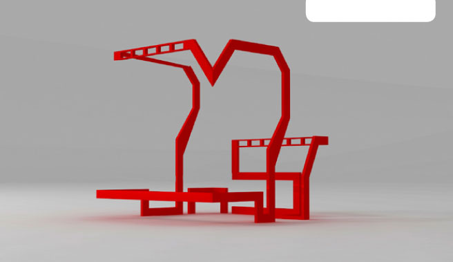 gaan en de deur uitlopen. De vorm is een abstracte weergave van de wooneisen.